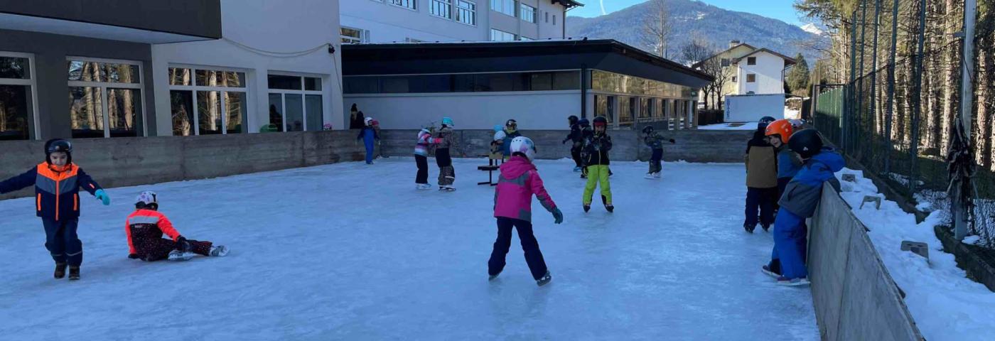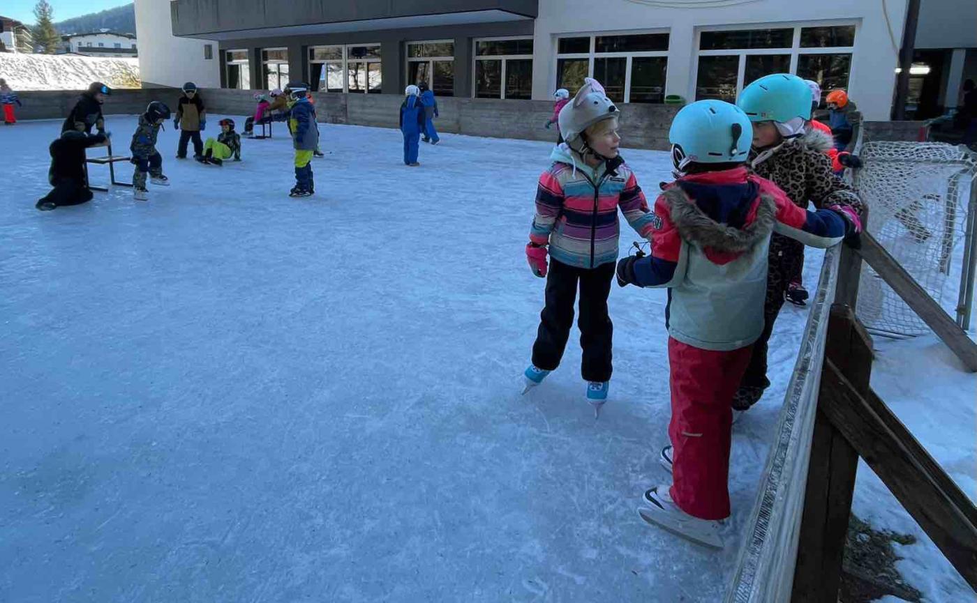 Vor den Weihnachtsferien erfreute uns die Gemeinde mit einer besonderen Überraschung: Der Eislaufplatz wurde erstmalig hinter der Mittelschule aufgebaut!