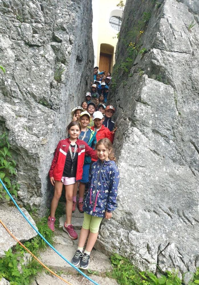 Unser letztes Ziel auf der Reise war Kössen – in der nördlichsten Gemeinde unseres Bezirks besuchten wir die Wallfahrtskirche Maria Klobenstein und spazierten durch den "gespaltenen Felsen", ehe wir die Rückfahrt antraten.