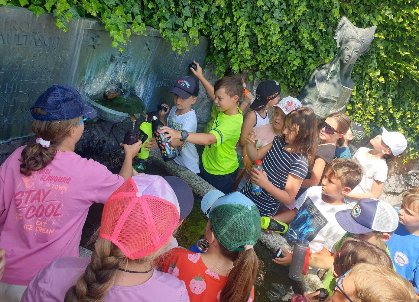 Schon seit Längerem beschäftigten sich die Drittklässler in Sachunterricht intensiv mit unserem Heimatbezirk Kitzbühel. Das Orientieren auf der Landkarte wurde geübt und theoretisches Wissen angeeignet. Am Schuljahresende wollten wir das Gelernte "in echt" erfahren und begaben uns auf eine spannende Bezirksrundfahrt. Nach einem kurzen Stopp beim Schaubergwerk Kupferplatte und einer Jausenpause in St. Johann nahmen wir Kurs auf Fieberbrunn. Dort verkosteten wir das Wasser vom "Fieberbründl", durch welches einst der Legende nach die Tiroler Landesfürstin Margarete Maultasch geheilt worden war.